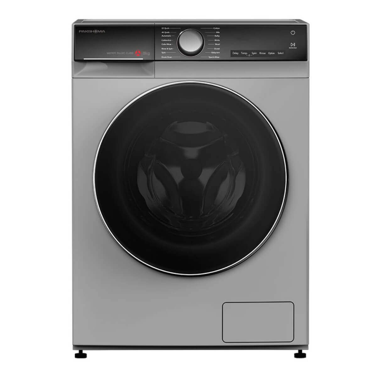 ماشین لباسشویی پاکشوما L9نوع درب از جلو بوده و دارای بدنه سفید رنگ می باشد. نمایشگر LED موجود در ماشین لباسشویی پاکشوما BWF-40107 WT به شما اطلاعات مهم شستشو مانند دمای آب، نام برنامه و زمان باقی مانده را نمایش می دهد. این محصول با توجه به مخزن 9 کیلویی که دارد، بیشتر برای خانواده هایی با جمعیت متوسط تا زیاد مناسب است.